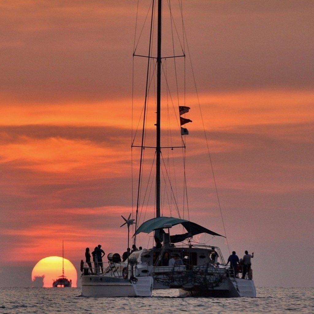 Relax and unwind on deck as the sun gracefully dips below the horizon, casting its warm hues across the water. Immerse yourself in the ambiance, with music playing softly against the backdrop of a picturesque small island and limestone cliffs.
